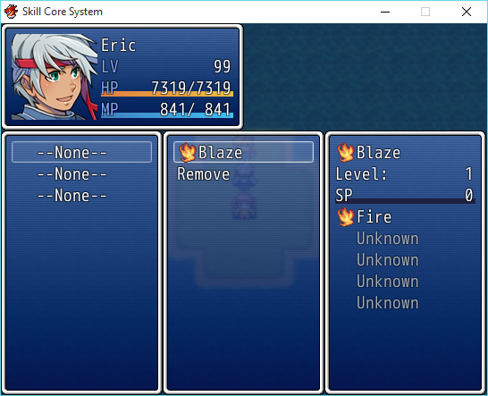 This script allows actors to equip ‘skill cores’ that give them skills. These cores will gain experience as the actors fight while equipped, allowing them to learn more skills. A popular example that uses this kind of mechanism is the Chaos Rings series.